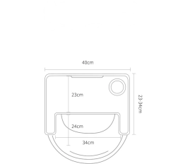 Priestranný tác (cca 40 × 23/34 cm) s integrovaným držiakom na pohár sa ľahko zloží a vyčistí. Ponúka hygienický povrch na podávanie jedál aj kreatívne aktivity.
