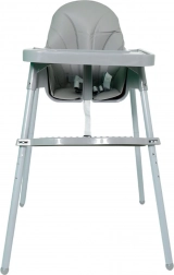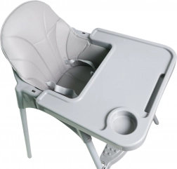 Robustné, naširoko rozkročené nohy a protišmyková opierka nôh zabezpečujú stabilitu na rôznych povrchoch. Viacbodové bezpečnostné pásy udržia dieťa pevne a komfortne pripútané. Hladké plastové plochy a vyberateľný tác umožnia rýchle čistenie po každom jedle.