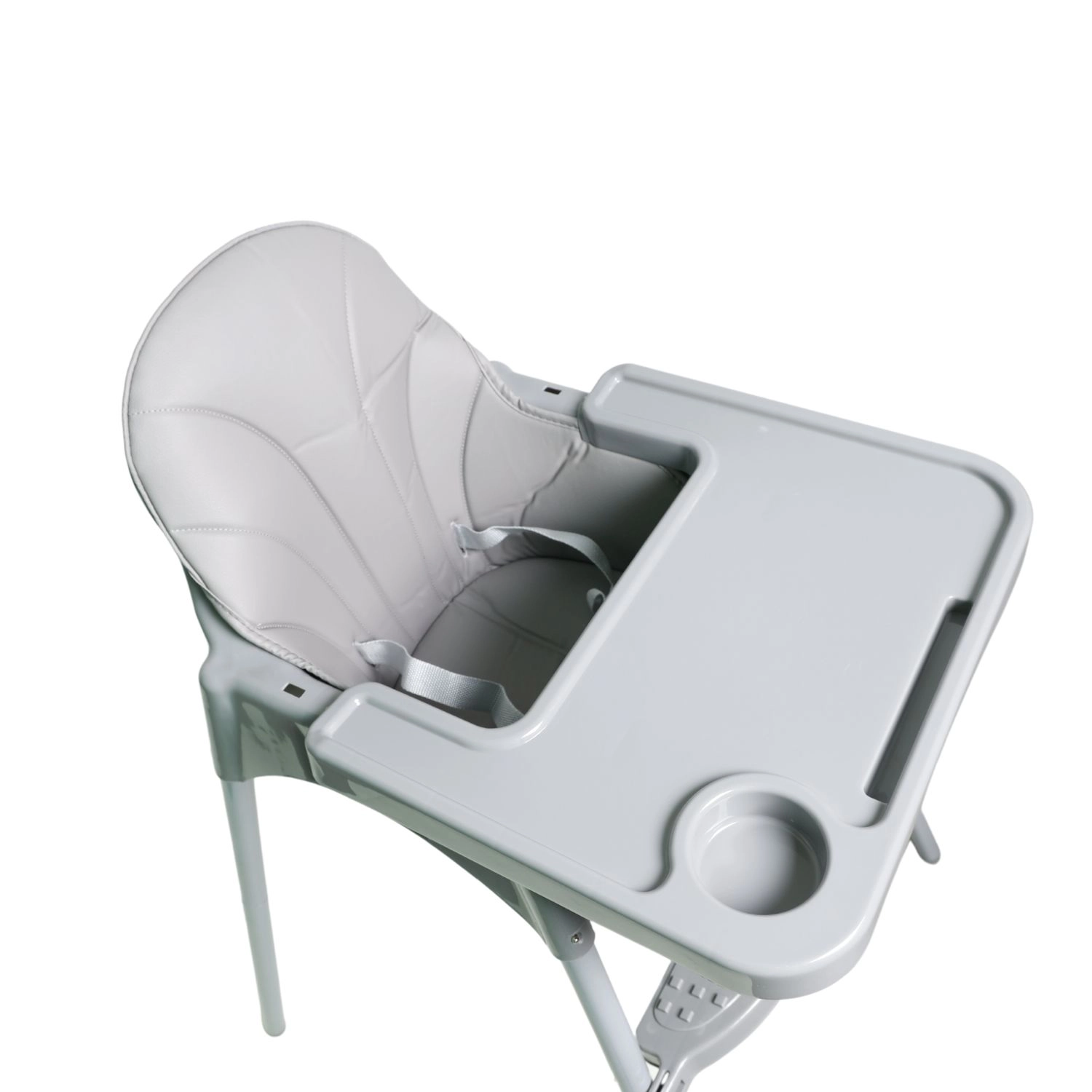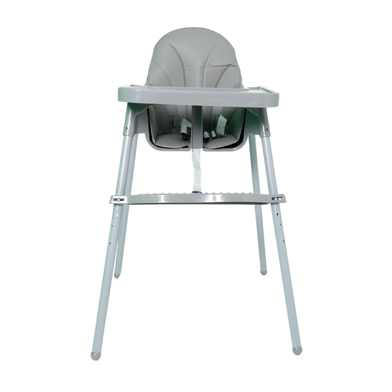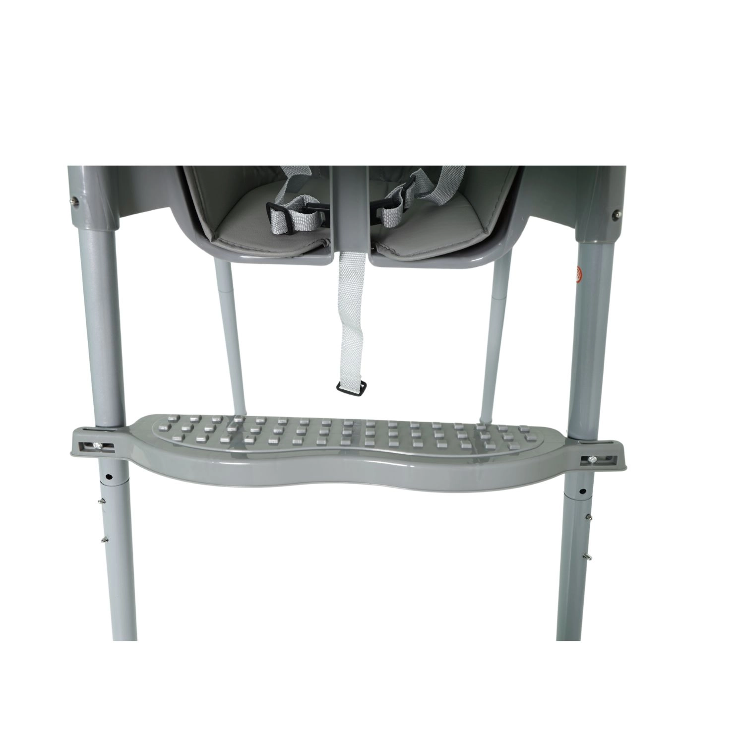 Široký rozostup nôh približne 46 × 46 cm a pevné trubkové nohy poskytujú spoľahlivú stabilitu. Viacbodové bezpečnostné pásy držia dieťa v bezpečí počas jedla aj hry.