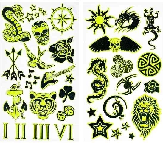 Dočasné tetovanie, ktoré po nasvietení žiari v tme, je skvelým doplnkom na každú príležitosť. Vďaka jednoduchej aplikácii vodou a šetrnému zloženiu je tetovanie vhodné na krátkodobé nosenie a ľahko sa odstraňuje.