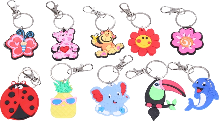 Štýlový prívesok na kľúče v zmiešanom výbere motívov na každodenné nosenie. Praktický doplnok na kľúče, batoh alebo tašku, ktorý pridá osobitý štýl a prehľadnosť vašim kľúčom.