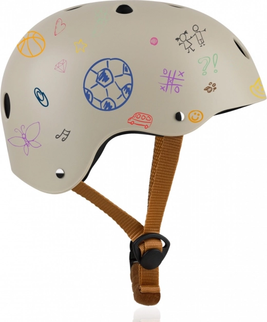 Každé dieťa je jedinečné. Preto prilba Lionelo umožňuje deťom zdobiť prilbu z vonku kriedou alebo fixkami, čo podporuje ich kreativitu a umelecké schopnosti.