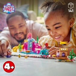 Objavte magický svet podmorskej zábavy s LEGO setom Krištáľová jaskyňa Malej morskej víly Ariel, kde deti môžu stavať a hrať sa s jaskyňou, otočnou plošinou a šmykľavkou. Tento set je ideálny na rozvoj kreativity a podporuje hru plnú nápadov v podobe princeznej Ariel.