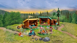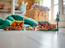 Súprava pre deti LEGO Friends Priateľské domčeky na letnom tábore obsahuje dve chatky na stavanie, táborový oheň a role-play doplnky.