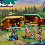 Stavebnica LEGO Friends Priateľské domčeky na letnom tábore ponúka mladým staviteľom možnosť tvoriť príbehy s postavami Paisley, Zack a Sky, ktorí sa vydávajú na útulné kempovanie. Súčasťou sú dve chatky s otváracími strechami, ktoré umožňujú nazrieť dovnútra. Postavy sú pripravené na nocovanie so spacákmi, vychádzkami na horských bicykloch a muzikou pri ohni, kde sa opejkajú marshmallows.