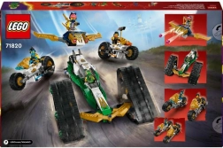 Stavebnica Multifunkčné ninja vozidlo prináša deťom od 9 rokov intenzívnu porciu ninjovej akcie. Veľké vozidlo možno jednoducho rozdeliť na štyri menšie modely: klzák Sory so streľátkami, teréňák Lloyda a motorky Colea a Nyi. Vďaka kombinácii pásov, kolies a kokpitu je hranie plynulé a nápadité.
