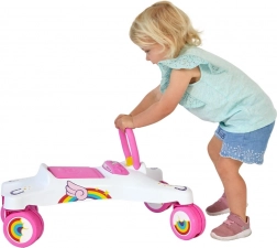 Roztomilé odrážadlo s motívom jednorožca je skvelým parťákom na každodenné hranie aj tréning stability. Vďaka otočným kolieskam 360° sa ľahko otočí na mieste a dieťa s ním plynulo prejde aj užšími priestormi. Robustná plastová konštrukcia poskytuje oporu a istotu, zatiaľ čo klaksón dodá jazde zábavu.