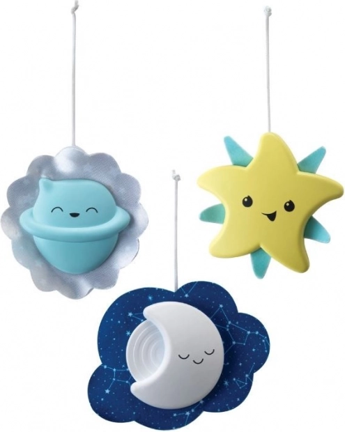 - 3 režimy používania: kolotoč 0–5 mesiacov, projektor/lampa na postieľku 5–18 mesiacov, nočná lampička na stolík od 18 mesiacov.