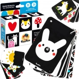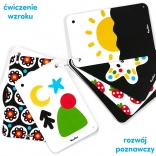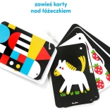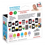 Praktická knižka na šnúrke obsahuje 20 ilustrácií. Výrazné kontrastné vzory upútajú oči a pozornosť vášho bábätka. Prezerajte si ich spoločne a rozprávajte sa o tom, čo na nich vidíte. Je to skvelý spôsob, ako tráviť spoločný čas s vaším batoľaťom a budovať si výnimočné puto. Priložili sme sprievodcu plného informácií o vývine zraku dojčiat a nápadov na hru.