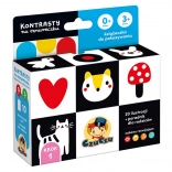 Ako sa hrať s bábätkom? S láskou, nehou a s pomocou pomôcok venovaných tým najmenším! Je čas na prvú knižku: čítajte si spoločne od prvých dní života. Je to nesmierne príjemný spôsob, ako aktívne podporiť vývin vášho dieťatka a vybudovať medzi vami jedinečné puto. Kontrasty na šnúrke je mimoriadne rozkošná knižka na šnúrke pre najmenšie bábätká.
