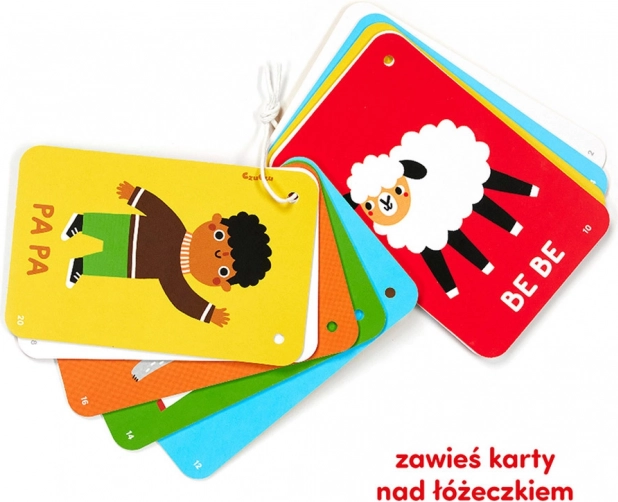 - Variabilné použitie: zaveste nad postieľku alebo nechajte dieťa obracať kartičky.
