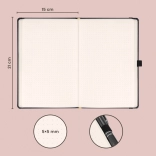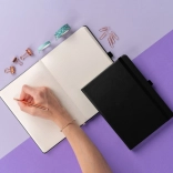 Objavte bodkovaný zápisník NOTIQUE Balacron v elegantnej čiernej farbe. Tento zápisník je cenený pre svoj kvalitný a odolný materiál, ktorý chráni váš obsah pred vonkajším poškodením.
