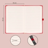 Zápisník v krásnej červenej farbe s linajkovaným formátom o rozmeroch 15 x 21 cm prináša dokonalú kombináciu klasiky a elegancie. Ideálny pre personalizáciu s firemnými logami vďaka jemnej štruktúre povrchu.