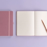 Elegantný ružový zápisník Neo s linkovanými stránkami, ideálny pre firemný branding a osobné poznámky.