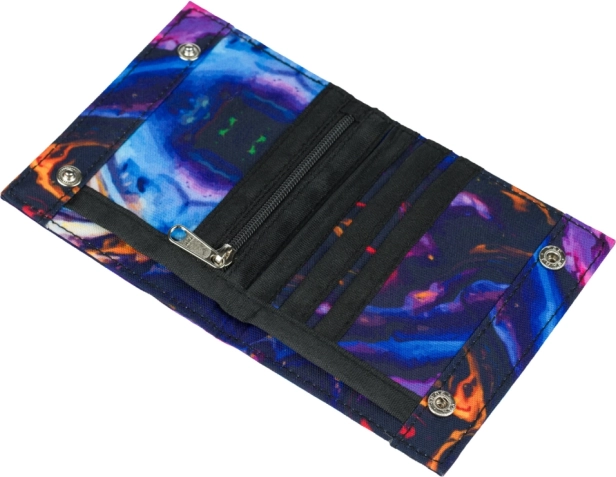 Táto študentská peňaženka je ideálnou voľbou do školy aj na voľný čas. Vďaka zapínaniu na dve patentky zostane obsah bezpečne na svojom mieste, zatiaľ čo samostatné vrecko na mince na zips udrží drobné prehľadne a bez rizika vysypania.