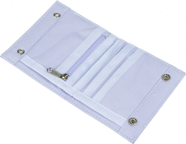 Praktická študentská peňaženka v elegantnej lila farbe ponúka uzatváranie na 2 patentky, vrecko na mince na zips a premyslený priestor na bankovky, karty aj doklady – ideálna do školy aj na každodenné nosenie.