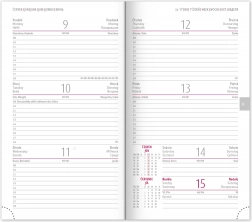 • Týždenný rozvrh s kalendáriom v češtine a slovenčine, s doplnkami v angličtine, nemčine, maďarčine a ruštine.