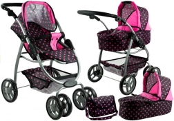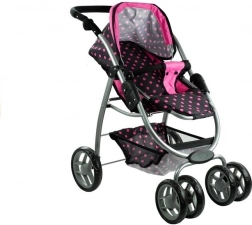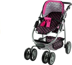 Kočík Alice 2v1 v čierno-ružovom dizajne kombinuje štýl a funkčnosť. Je navrhnutý tak, aby vyzeral ako skutočný kočík, čo podporuje zodpovednosť a empatiu u malých mamičiek pri hraní. Zmeny medzi hlbokou vaničkou a športovým sedadlom pridávajú na zábave a rozvíjajú interpersonálne zručnosti, fantáziu a kreativitu detí.