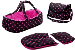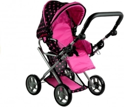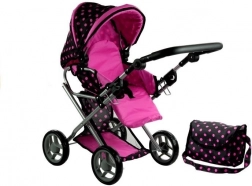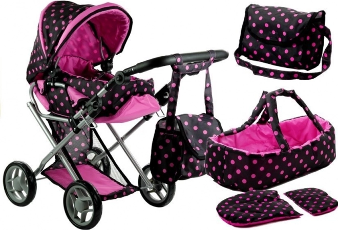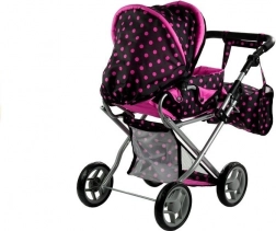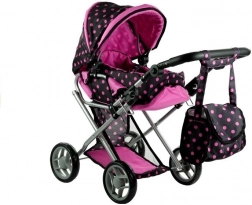 Hlboký kočík pre bábiky Alice — čierny s ružovými bodkami
