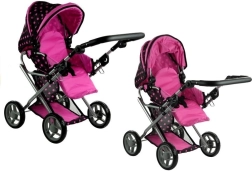 Ak hľadáte kočík na prevoz bábik pre svoju dcérku, máme pre vás tip — vyberte si kočík zo série Alice. Prečo? Pretože má množstvo výhod a praktické využitie, a jeho dizajn hovorí sám za seba. Čierny kočík ozdobený ružovými bodkami je multifunkčnou hračkou, ktorú jednoducho premeníte z klasického kočíka na športovú verziu.