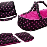 Čierno-ružový vzhľad s bodkami a ružovou mašľou dodáva kočíku moderný a príťažlivý vzhľad.