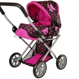 Kočík Alice pre bábiky je ľahký, jednoducho ovládateľný a skvelý pre všetky malé "mamičky". Konštrukcia je z odolného kovu, čo zaisťuje stabilitu a dlhú životnosť. Čierno-ružový dizajn s bodkami dodáva kočíku elegantný vzhľad, zatiaľ čo skladacia funkcia umožňuje jednoduché prenášanie a skladovanie.