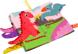 Objavte čaro tohto farebného textilného leporela plného dinosaurov. Každá stránka je bohatá na ilustrácie a poskytuje vizuálny aj dotykový zážitok vďaka vystupujúcim dinosaurím chvostíkom, ktoré podporujú senzorický rozvoj detí. Deti sa tiež môžu naučiť anglické slová vďaka menám dinosaurov uvedeným na stránkach.