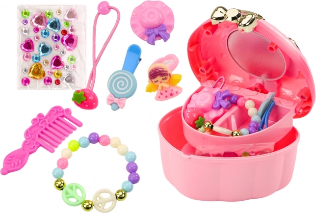 Elegantný kufrík v tvare srdca je ozdobený zlatými detailmi a veľkým farebným srdcom na vrchu, ktoré očarí každé dieťa. Tento set zahŕňa: