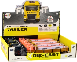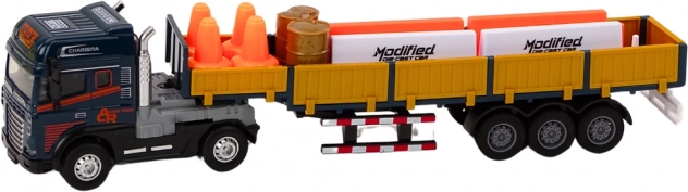Táto modrá nákladná súprava s prívesom v mierke 1:24 verne napodobňuje skutočné TIR vozidlo. Náves má otváracie bočné dvere pre ľahký „nakladací a vykladací“ režim, na plošine sú dve barely ako náklad. Model je vybavený svetlami a zvukmi štartu motora aj cúvania, čo zvyšuje autentickosť hry.