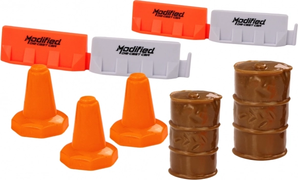 - 2 barely, 8 dopravných kužeľov, 4 cestné zábrany (oranžovo-biele)