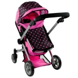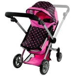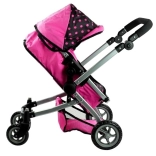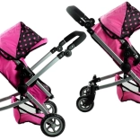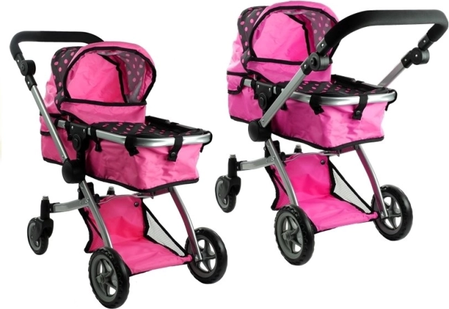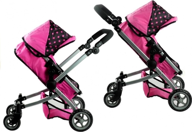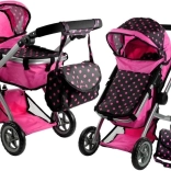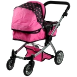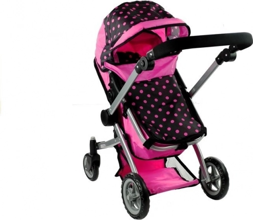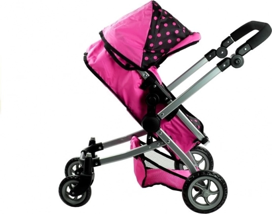 Kočík pre bábiky Alice 2v1 poteší realistickým spracovaním a univerzálnym prevedením. Počas chvíľky ho premeníte z hlbokého kočíka s vaničkou na športový kočík. Kombinácia ružovej a čiernej s bodkami pôsobí hravo a moderne, zatiaľ čo odolná kovová konštrukcia a kvalitné poťahové látky zaistia dlhú životnosť.