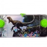 Klasická vrecková vodná hra s motívom dinosaura na tréning presnosti a trpezlivosti. Pomocou dvoch tlačidiel rozvírite vodu a nasadzujete farebné krúžky na tŕne. Ideálna na cesty aj domov – jednoduchá, pútavá a relaxačná zábava pre deti aj dospelých. Kompaktné rozmery, jednoduché ovládanie, bez batérií.