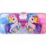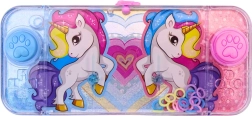 Zábavná vrecková vodná hra s motívom jednorožca poteší deti aj dospelých. Pomocou dvoch tlačidiel rozhýbete vodu a snažíte sa nasadiť farebné krúžky na kolíky. Jednoduchá, návyková mechanika, podpora jemnej motoriky a trpezlivosti a kompaktné rozmery do vrecka z nej robia ideálnu hračku na cesty.