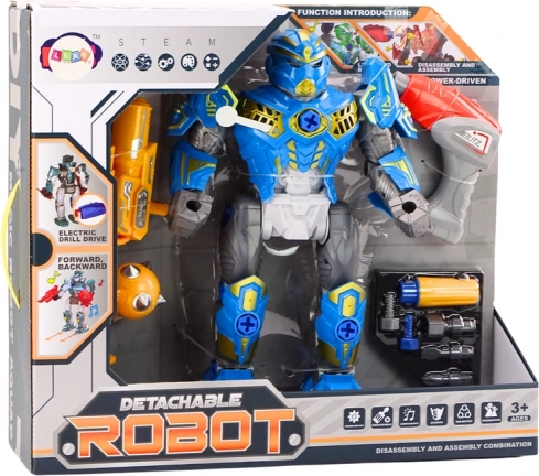 Po zostavení možno batériový modul z vŕtačky použiť ako pohon – robot sa pohybuje vpred aj vzad pre realistickejšiu hru.