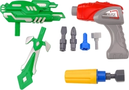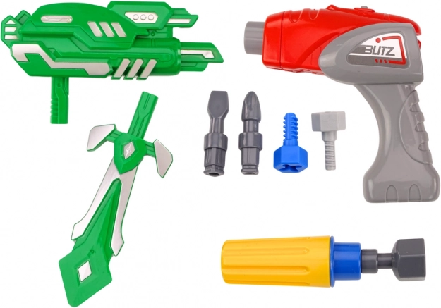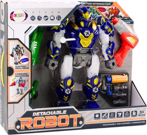 Súprava obsahuje všetko, čo je potrebné na okamžité hranie: robota na montáž, hračkovú vŕtačku s nadstavcami, meč a zbroj a batérie typu AG13. Vďaka robustnému plastovému spracovaniu je ideálny na každodenné hranie a rozvoj technického myslenia.