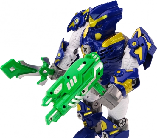 Robot je vybavený mečom a zbraňou pre napínavé misie. Farebné prevedenie a pohyblivé časti podnecujú fantáziu a kreatívnu hru.
