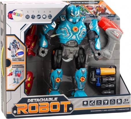 - Skrutkovanie a rozoberanie, pohon robota z batérie vŕtačky, svetelné a zvukové efekty