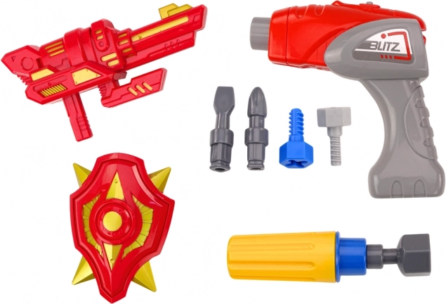 - Robot, detská vŕtačka, skrutkovač, 3× výmenný nadstavec, štít a doplnky