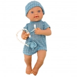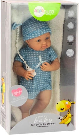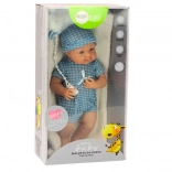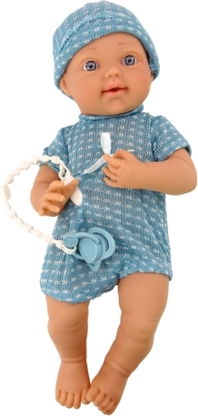 Bábika bábätko v modrom oblečku s čiapočkou a cumlíkom ponúka deťom možnosť ponoriť sa do sveta fantázie, pričom rozvíja ich manuálne zručnosti a kreativitu vďaka pohyblivým ručičkám a nožičkám.