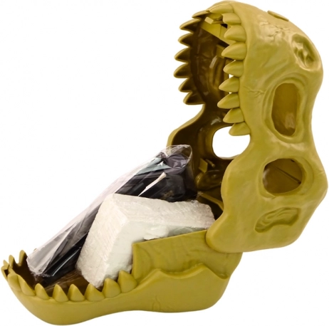 Celá sada je uložená v plastovej dinosaurej lebke, ktorá plní dvojitú funkciu: je praktickým úložným kontajnerom a štýlovou dekoráciou, ideálnou na umiestnenie do izby malého fanúšika dinosaurov. Vďaka tomu sada poskytuje nielen dlhotrvajúcu zábavu, ale aj atraktívny dekoratívny prvok.