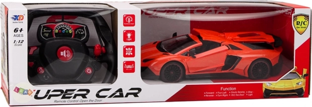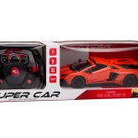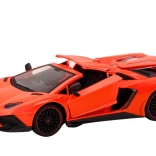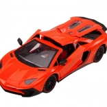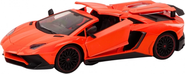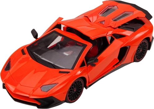 Oranžová karoséria s detailom čiernych prvkov vytvára autentický vzhľad športového auta. Všetky dvere sú otvárateľné a pridávajú na realistickosti.