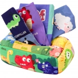 Táto senzorická hračka poskytuje dieťaťu nielen zábavu, ale aj podporuje rozvoj jeho motorických zručností prostredníctvom činností, ako je uchopovanie, manipulácia a skúmanie textúr. Okrem toho môže batoľa pri hre rozvíjať aj kognitívne schopnosti rozpoznávaním farieb, tvarov a obrázkov na vreckovkách.