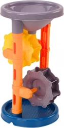 Súprava hračiek na piesok s mlynčekom je nevyhnutnou výbavou pre každého malého plážového nadšenca alebo milovníka hier v piesku. Stredobodom je mlynček s dvoma kolieskami, ktorý má dvojitú funkciu: na jednej strane má sitko na preosievanie piesku a na druhej strane lievik.