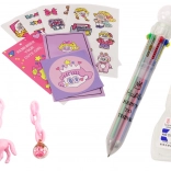 V balení sú taktiež rôzne doplnky pre zábavnú personalizáciu. Obsahuje farebné pásy, nálepky a záložky s pomponmi, ktoré sú nielen praktické, ale aj estetické.