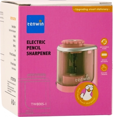 Ružové elektrické strúhadlo TENWIN je praktický pomocník pre žiakov, študentov, umelcov aj do kancelárie. Je určené pre ceruzky a pastelky s priemerom 6–8 mm a poskytuje hladké, rovnomerné strúhanie s minimom námahy. Priehľadná nádobka uľahčuje kontrolu plnosti, zatiaľ čo bezpečnostný zámok viečka bráni náhodnému vysypaniu odrezkov.