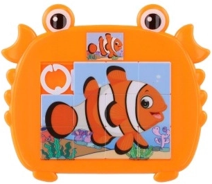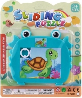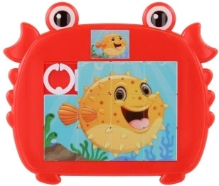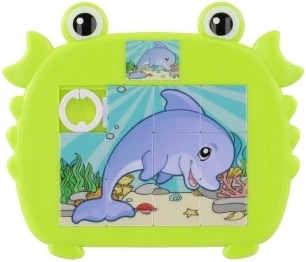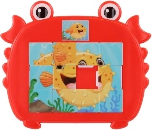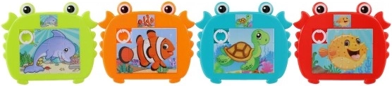 Veselé a farebné detské posuvné puzzle v tvare kraba s motívmi morských zvieratiek. Zábava a rozvojové zručnosti pre malé šikovné prstíky vďaka atraktívnym morským motívom.