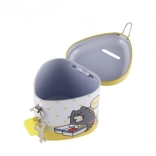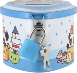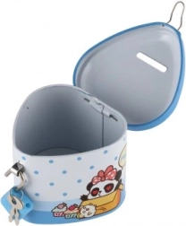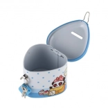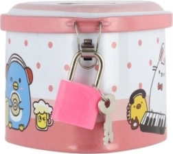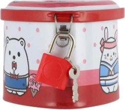 Integrovaný otvor na mince a kovový visiaci zámok s 2 kľúčmi udržia úspory v bezpečí. Deti si ľahko odkladajú drobné a rodičia majú pokoj.