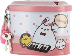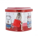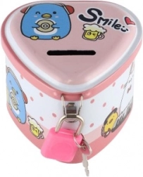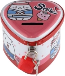 Táto detská plechová pokladnička v tvare srdca kombinuje pôvabný dizajn s praktickými funkciami. Vďaka pevnému kovovému telu a visiacemu zámku s kľúčikmi poskytuje bezpečné miesto pre úspory, zatiaľ čo farebné ilustrácie motivujú deti k pravidelnému sporeniu.
