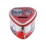 Srdcová pokladnička v červenej, ružovej, modrej a žltej farbe s roztomilými ilustráciami podporuje radosť zo sporenia a je peknou dekoráciou detskej izby.