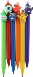 Každé pero zdobí vtipná postavička. Mix farieb poteší deti a oživí každodenné písanie.